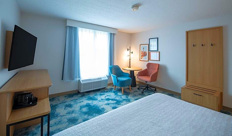 Provides a flat-screen LCD TV, a coffee maker and a work desk.
